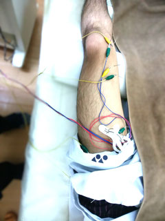 最近寝る時、よく右足がつることで来院しました。触診してみたら、ふくらはぎや太ももの筋緊張や痛みを強く感じていたので、まず動きの悪くなった膝関節の僅かな歪みを調節して下腿部の内側にあるインナーマッスルをしっかりと伸ばしていきました。